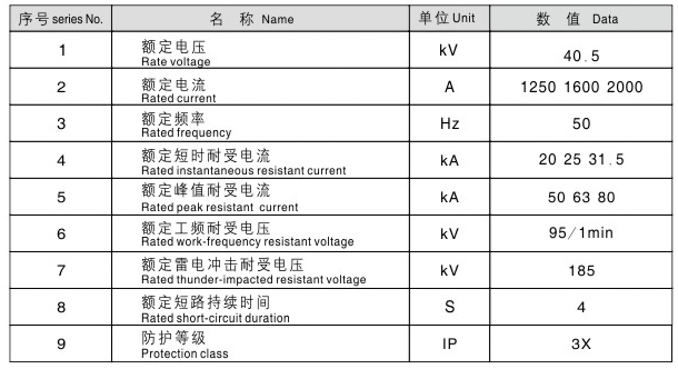 真空开关柜主要技术参数